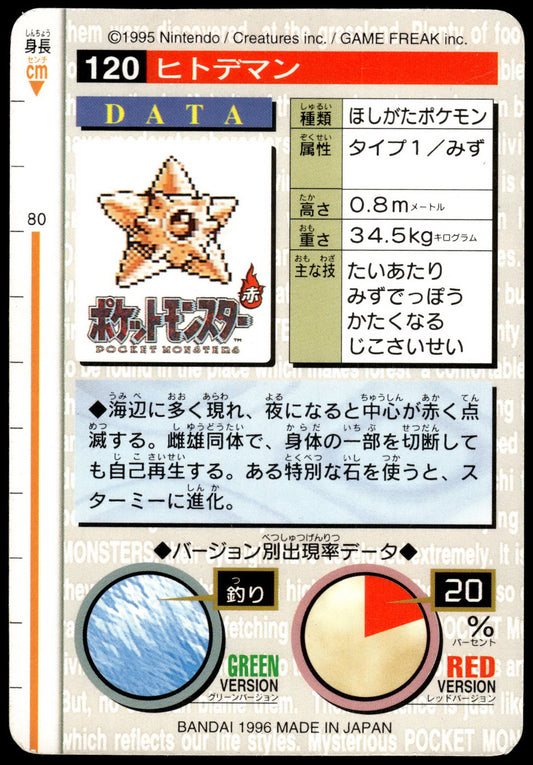 Staryu #120 Green 1996 JPN Bandai Carddass Vending Pokemon [NM] (1)