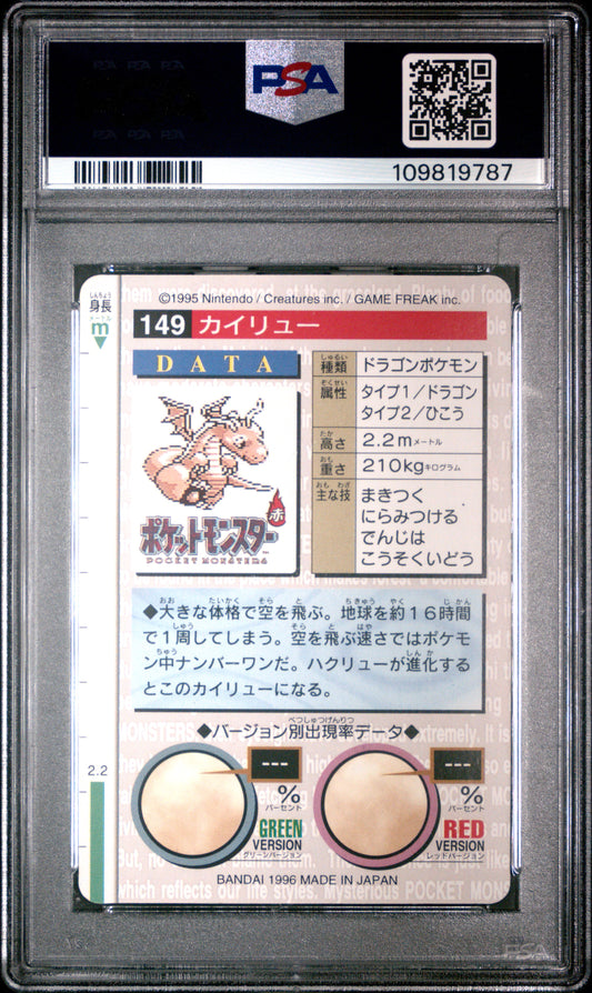 PSA 10 - Dragonite #149 1996 JPN Bandai Carddass Vending *POP 19* - Pokemon