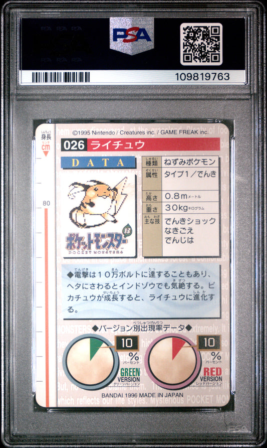 PSA 7 - Raichu #26 1996 JPN Bandai Carddass Vending - Pokemon