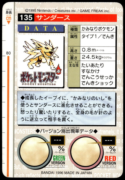 Jolteon #135 Green 1996 JPN Bandai Carddass Vending Pokemon [PL] (1)