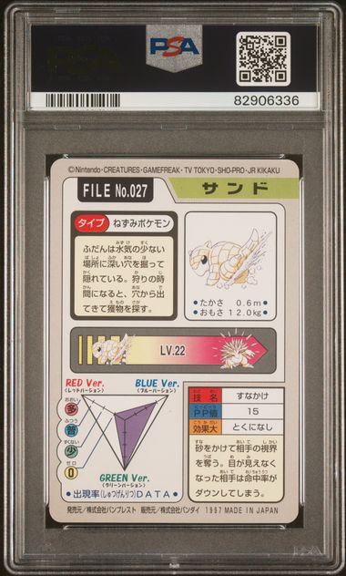 PSA 8 - Sandshrew Line #027 1997 Bandai Carddass Pocket Monsters - Pokemon