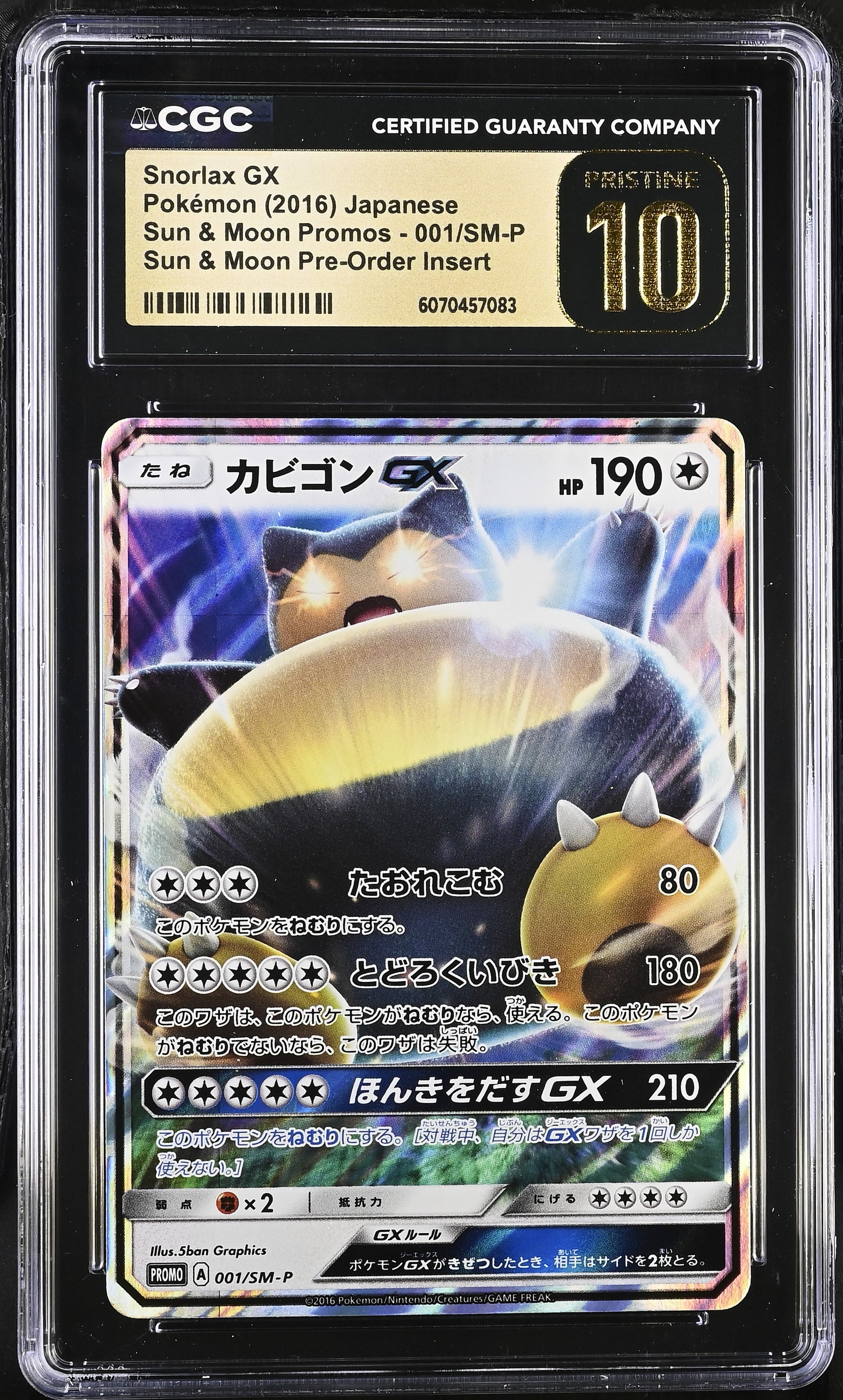 CGC 10 PRISTINE - Snorlax GX 001/SM-P Pre-Order Insert Japanese Promo - Pokemon