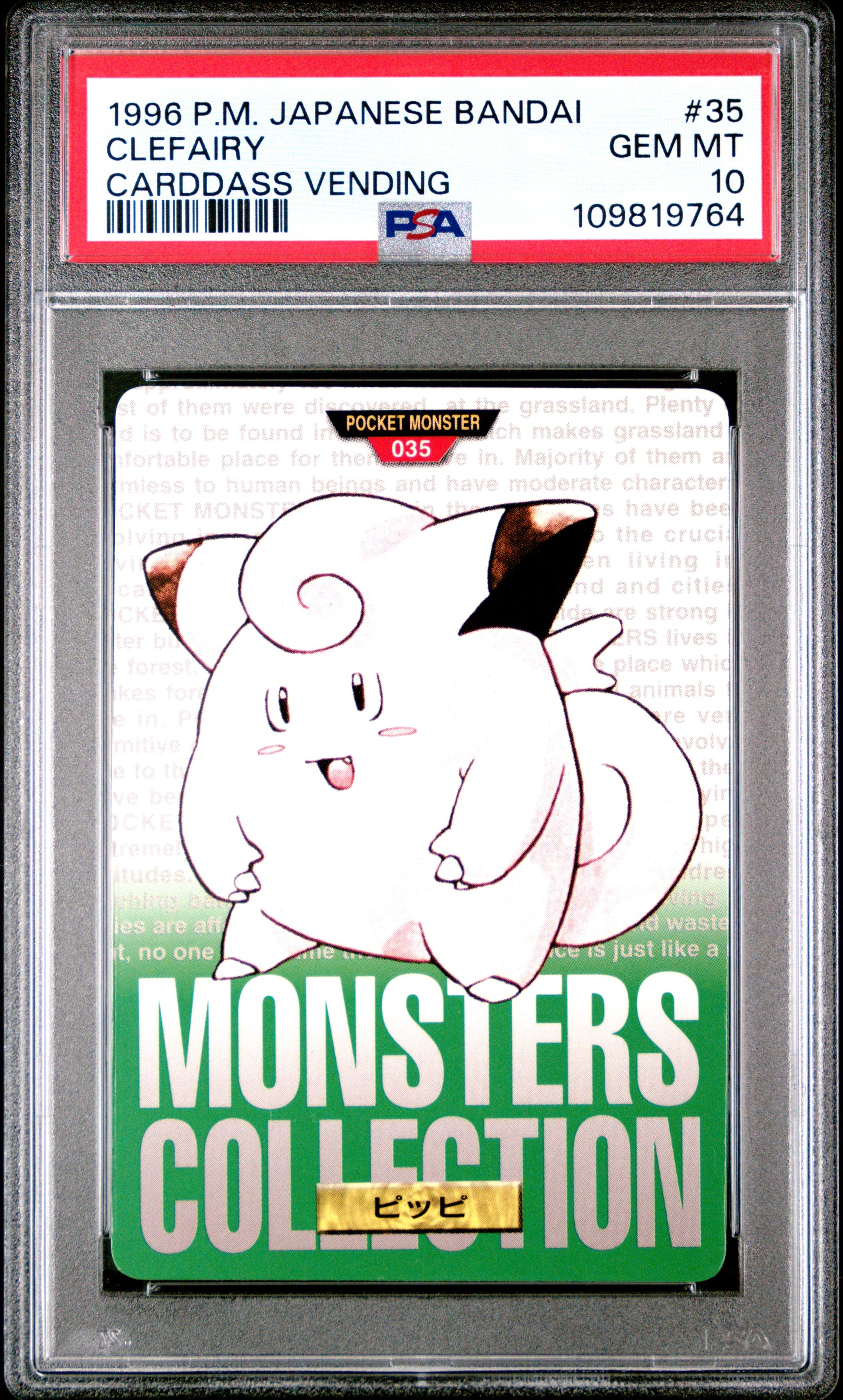 PSA 10 - Clefairy #35 1996 JPN Bandai Carddass Vending *POP 12* - Pokemon