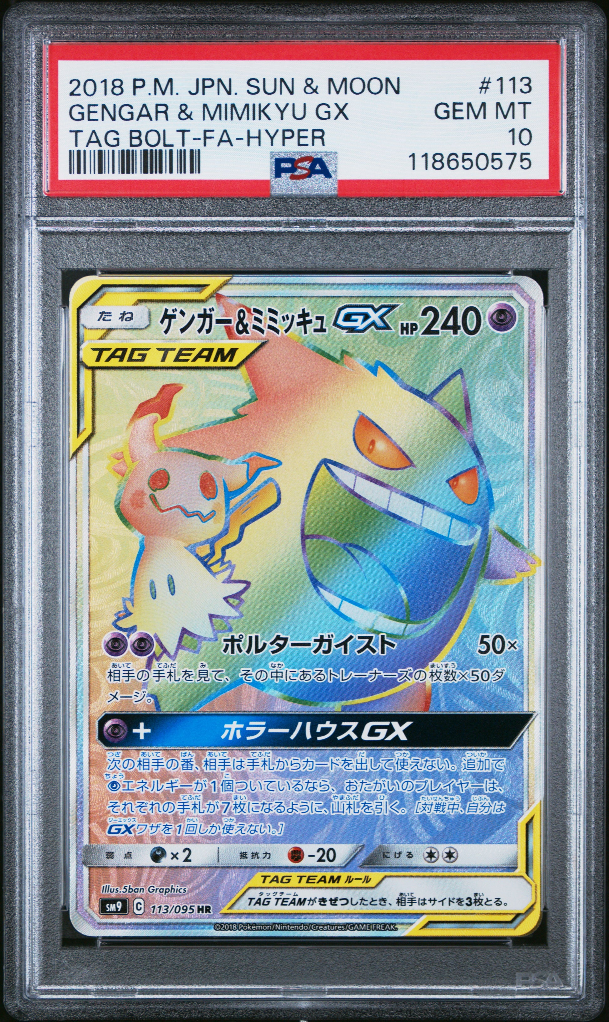 PSA 10 - Gengar & Mimikyu GX 113/095 SM9 Tag Bolt - Pokemon