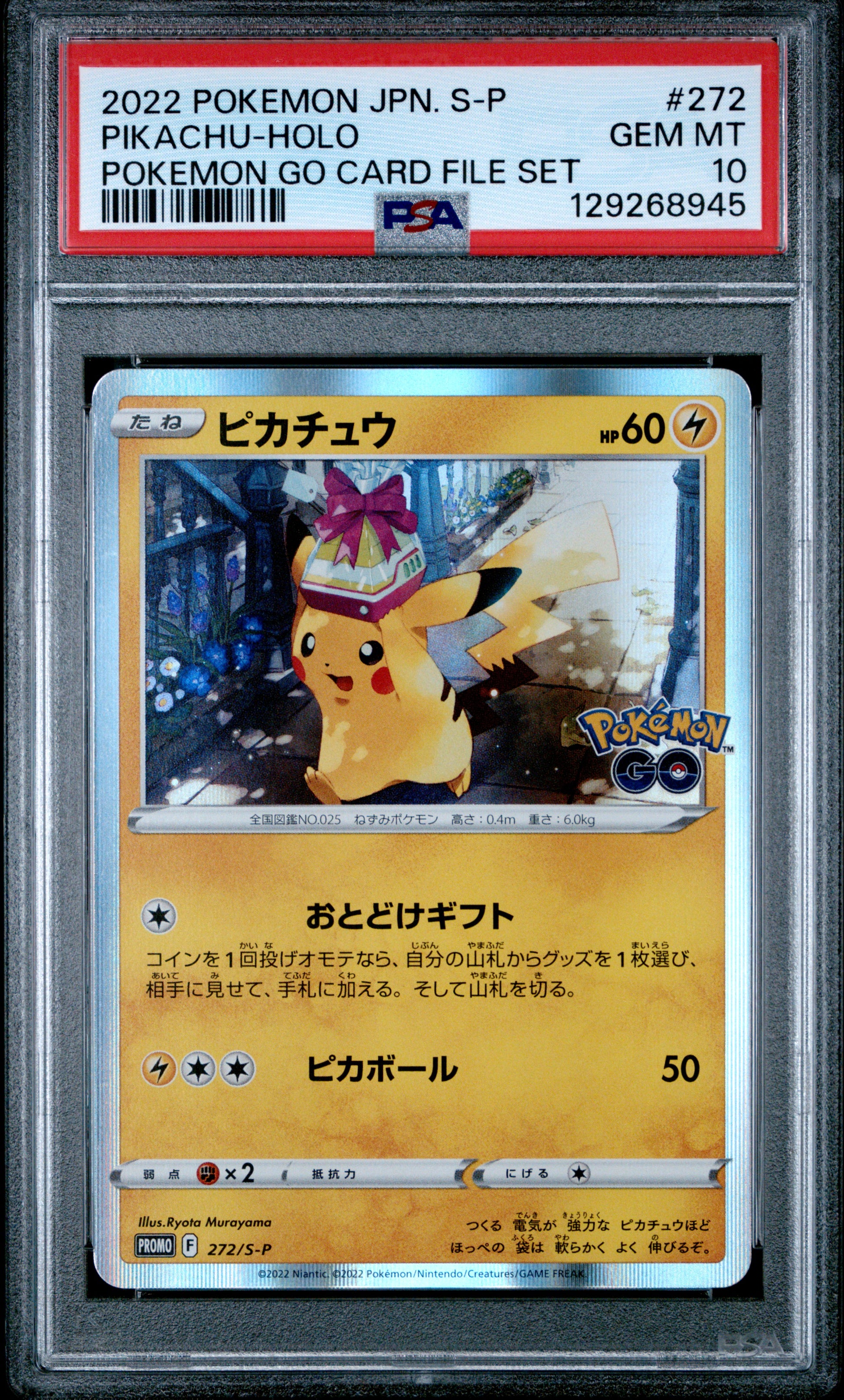 PSA 10 - Pikachu Holo 272/S-P Pokemon GO Card File Set Japanese Promo - Pokemon