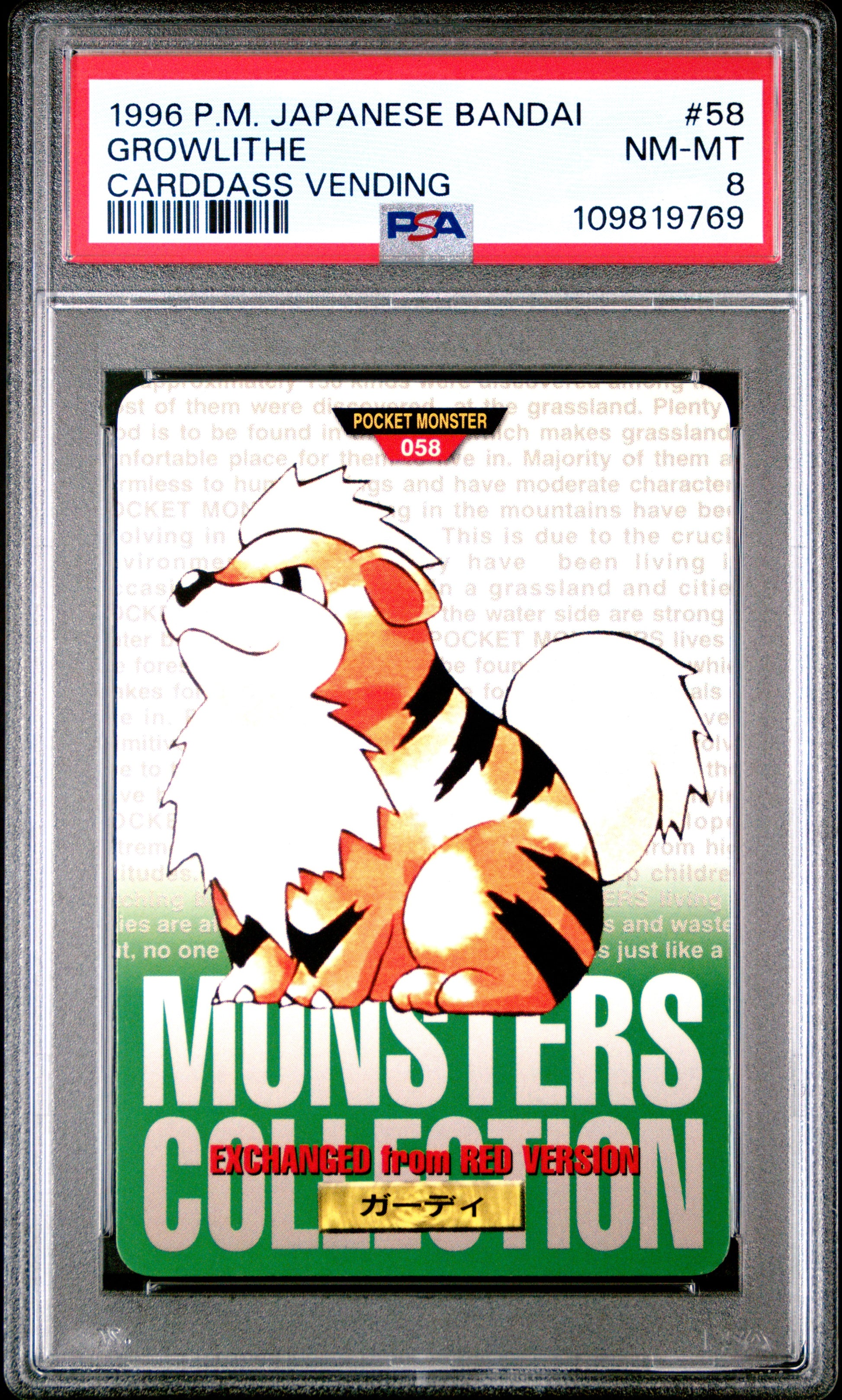 PSA 8 - Growlithe #58 1996 JPN Bandai Carddass Vending - Pokemon
