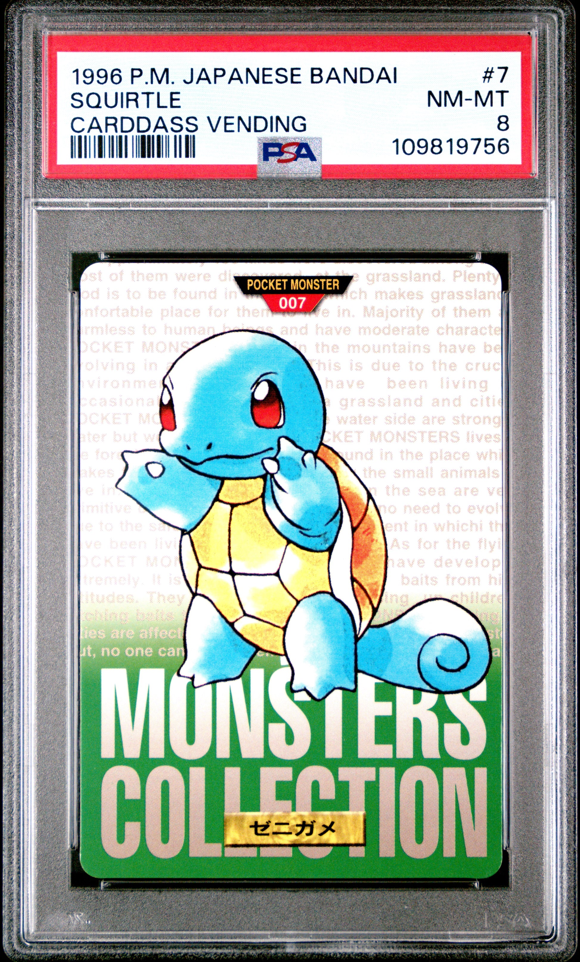 PSA 8 - Squirtle #7 1996 JPN Bandai Carddass Vending - Pokemon